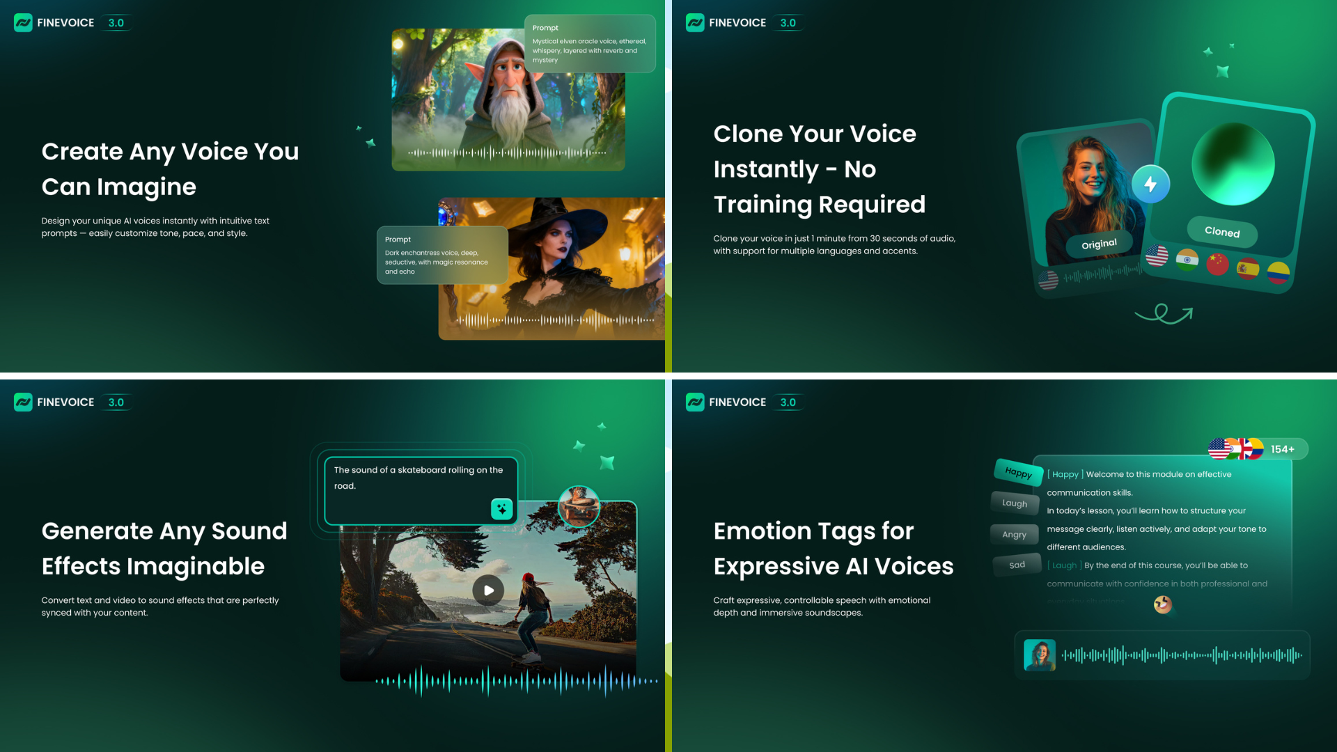 At its core, FineVoice offers text-to-speech (TTS) capabilities that allow users to convert written text into natural-sounding audio. The platform supports a wide variety of voices and languages, enabling users to create content for global audiences. In fact, FineVoice supports over 150 languages and accents, making it ideal for localization and international projects.
